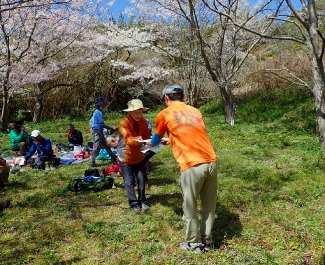 満開の桜の下で美味いお酒、つまみに腹一杯、それぞれ山談義に花を咲かせいい気分になる。今年は風もなくポカポカの陽気で、時間もあっという間にすぎて、撤収して散会したのは16時5分。少々飲み過ぎた人もいたかも。