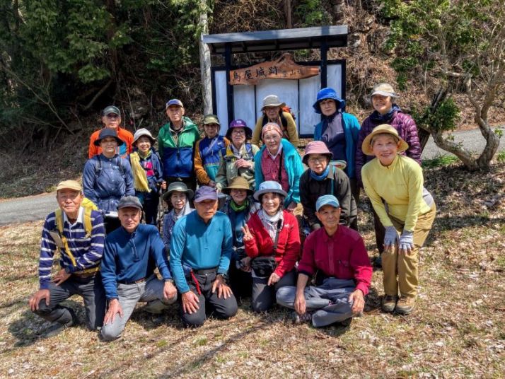城山(774m)まではもう少し。ここは展望がないので、三の丸展望所まで行ったメンバーも。お昼は本丸跡で、柔らかな日差しを浴びて気持ちの良い時間を過ごす。