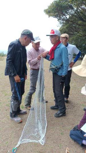 その後は頂上で記念撮影をし、時間があるので、会長持参の遭難者救助用ネットの使い方研修。