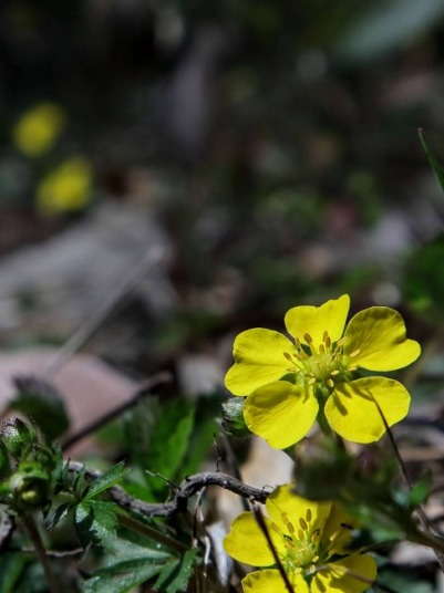降る道には可愛いセンボンヤリ、小さなリンドウ、春の花が可愛い。