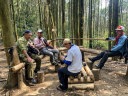 皆さん夢中でワラビ採り。教えてもらってもなかなか見つけられない人、次々に採取する人、「お味噌汁に美味しいよ」「あく抜きは?」とひとしきり話が弾む。