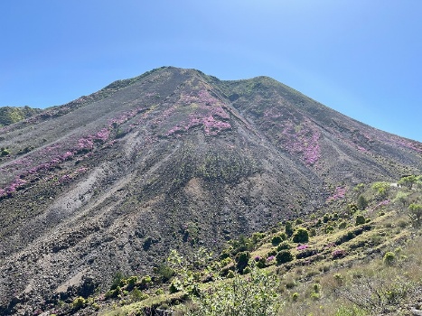 遠くから、今から登る三俣山や九重の山々の山肌に鮮やかなピンク色を見るだけで胸が躍ります。