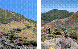 右側斜面が大きく崩壊し、南峰斜面にも崩れているところがあり自然の驚異を感じる。