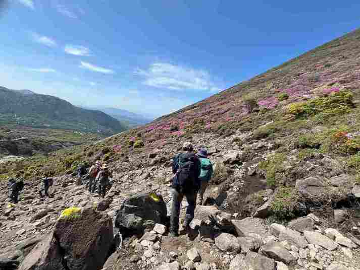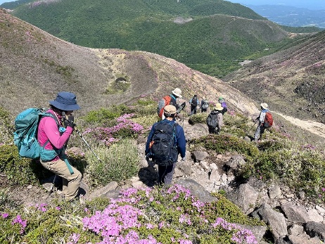 登山経験があまりないのですが、九重のミヤマキリシマを見たいと思い参加しました。初めての九重ミヤマキリシマです。山行の日は2日前の雨が嘘のような晴天です。