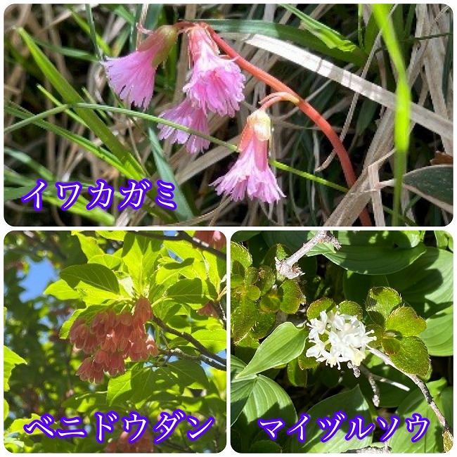しかし、名残のシャクナゲ、小さな白い花のマイヅルソウ、初めましてのイワカガミ、サーモンピンクのドウダンツツジ、そしてもちろんお目当てのミヤマキリシマ。