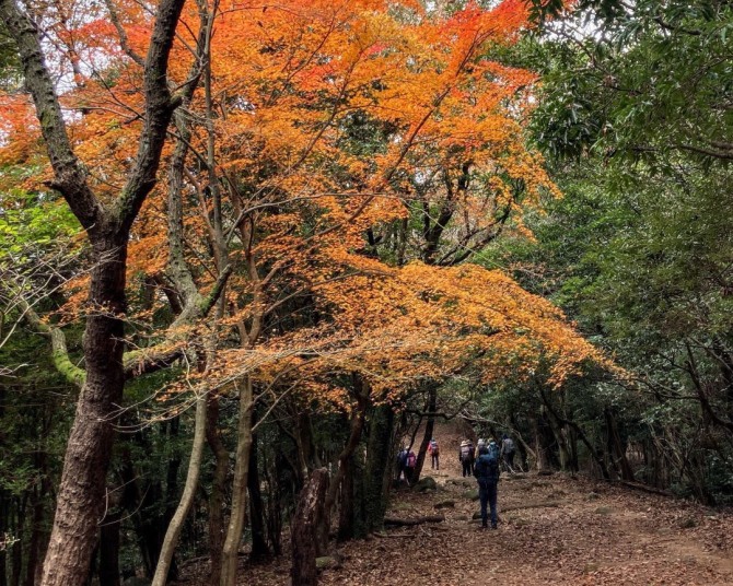 時々立ち止まって紅葉を楽しむ。