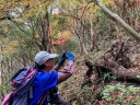 午後からは防火広場から紅葉ロードへ。ここにはまだ紅葉が残っており、黄色やオレンジ、赤い色で楽しませてくれるが、足元が悪く、滑らないように歩くのに精一杯。