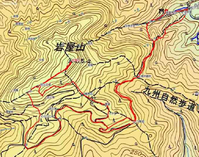 虹が丘登山口9:53~10:18三角休憩所~11:03十郎岳入り口~11:47岩屋山山頂(昼食)12:30~14:14虹が丘登山口
