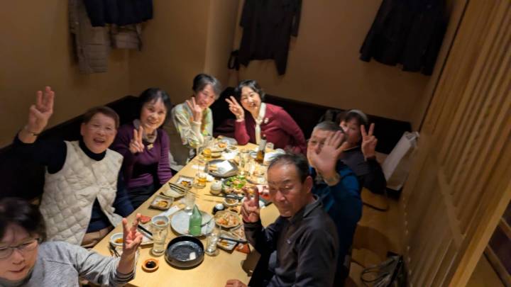 午後8時閉会、お店の前でまだお喋りが続き、カラオケ組、直帰組と散会しました。