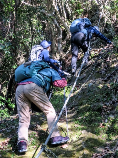 岩場にかかるところで小休止として衣服調整し、スリリングな岩場に挑戦