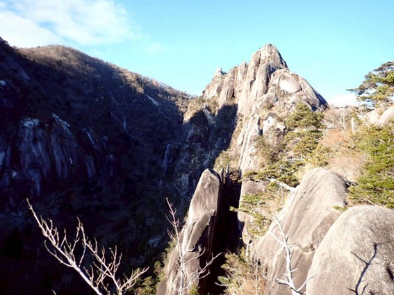 12/29 大崩山荘5:45~6:33ワク塚分岐(対岸)~7:37 1024m地点~8:25袖ダキ展望所~10:07りんどうの丘分岐~坊主尾根分岐~11:07-大崩山~11:40坊主尾根分岐~13:48 994m地点~14:40大崩山荘~15:40大崩登山口